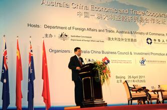 本次中國(guó)-澳大利亞經(jīng)濟(jì)貿(mào)易合作論壇在北京飯店舉辦,國(guó)務(wù)院總理李克強(qiáng)與澳大利亞總理杰拉德共同出席了本次論壇并致辭。中澳之間擁有了廣泛的經(jīng)貿(mào)合作基礎(chǔ),國(guó)際經(jīng)濟(jì)形勢(shì)在不斷轉(zhuǎn)型,但中澳雙邊經(jīng)貿(mào)有著很強(qiáng)的互補(bǔ)性。李克強(qiáng)總理指出,中國(guó)和澳大利亞都是充滿發(fā)展活力的經(jīng)濟(jì)體,雙方應(yīng)站在戰(zhàn)略的高度,用全球眼光規(guī)劃中澳經(jīng)貿(mào)關(guān)系的未來(lái),從多維空間拓展雙邊務(wù)實(shí)合作,促進(jìn)兩國(guó)經(jīng)貿(mào)關(guān)系再上新臺(tái)階。