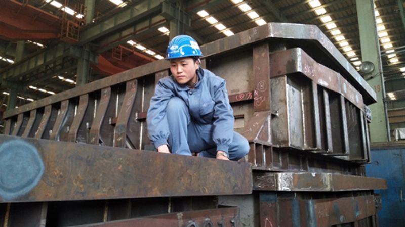 孫曉龍剛到重機(jī)分公司時,正逢印尼B&V煙風(fēng)道項(xiàng)目如火如荼的施工。印尼煙風(fēng)道項(xiàng)目特點(diǎn)是板片薄、筋板大,焊接變形大不易控制。對于孫曉龍來說,從來沒有接觸過,也正是他業(yè)務(wù)提高學(xué)習(xí)的好時機(jī)。特別是型鋼下料對孫曉龍來說還是個新課題,他不放棄任何一次機(jī)會,每當(dāng)型鋼下料時,他就拿著圖紙?jiān)诂F(xiàn)場對照學(xué)習(xí),聽取師傅講解,自己再仔細(xì)揣摩。另外,印尼煙風(fēng)道項(xiàng)目不規(guī)則薄板也較多,在拼接裝型鋼時特別容易弄反板子的方向,所以現(xiàn)場跟蹤檢查必不可少。為了照顧師傅年齡偏大,一些空間不便進(jìn)入、上下攀爬困難,孫曉龍就在師傅的指導(dǎo)下上上下下數(shù)百次,量尺寸、看外觀質(zhì)量,雖然累但學(xué)到了不少知識和經(jīng)驗(yàn)。