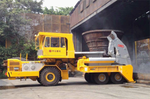 用于熱態(tài)爐渣無(wú)軌化熱潑工藝。該產(chǎn)品具有裝罐、卸罐、翻罐倒渣、運(yùn)輸一體化作業(yè)能力;整車前后車架鉸接,實(shí)現(xiàn)折腰轉(zhuǎn)向,具有轉(zhuǎn)彎半徑小的特點(diǎn);整車為前橋驅(qū)動(dòng),后部承載的拖動(dòng)設(shè)計(jì)結(jié)構(gòu),整車結(jié)構(gòu)承載能力強(qiáng);駕駛室布置在前車架中間高位,視野寬敞;駕駛轉(zhuǎn)向隨動(dòng),轉(zhuǎn)彎操縱感覺性強(qiáng);駕駛位具備前后雙向駕駛,且駕駛室遠(yuǎn)離渣罐。